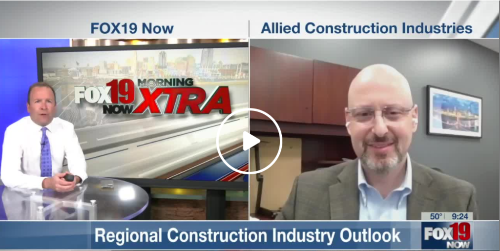 • May 12, 2021 – Fox19’s Frank Marzullo spoke with Jordan Vogel, ACI’s Executive Director, about the commercial construction industry’s pandemic year, current projects, and future growth. Jordan touched on the need for more skilled workers in our industry and the strength of our member companies during 2020. Watch the interview here!